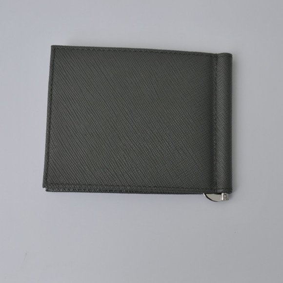 Prada Mens Saffiano Grey Leather Money Clip Wallet