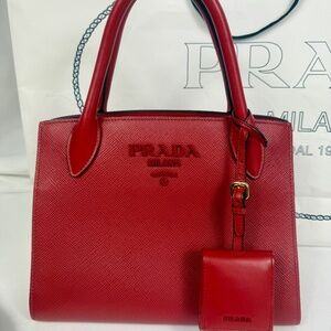 Gorgeous Prada Monochrome Fuoco (Red) Saffiano Cuir Tote Bag