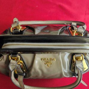 Prada Ombre Dark Brown/Tan Vernice Sfumata Patent Leather Frame Bag *Vintage*