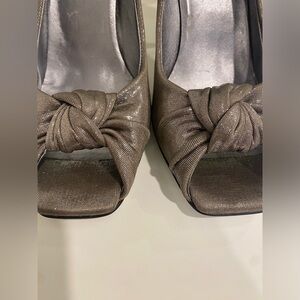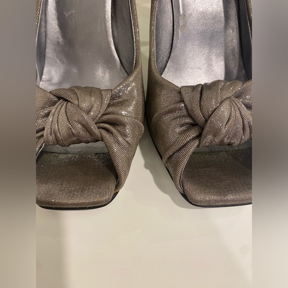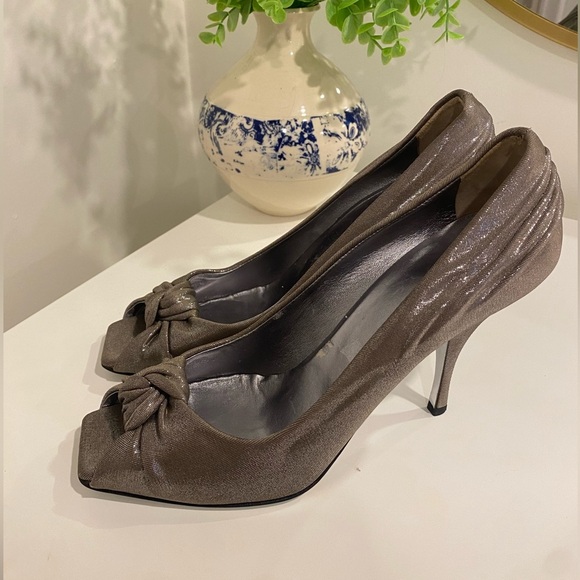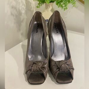 These stunning Prada Open-Toe Metallic Pumps elevate any outfit with their sleek design and shimmering metallic finish. Crafted with high-quality materials, these pumps offer both style and comfort with a refined open-toe silhouette, perfect for evening events, parties, or adding a touch of luxury to your everyday wardrobe. Pair with a party dress or casual trousers for an unforgettable outfit.