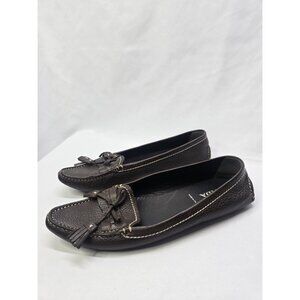 Prada Pebbled Leather Tassel Point Driving Loafer Shoes Women's 38 US 7.5