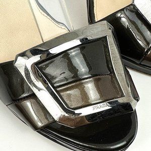Condition: Good, upper is in excellent condition, wear to soles and one of the "Prada" logos is partially broken off on the sole of one of the shoes (see photos), small mark on back of one heel