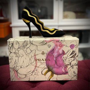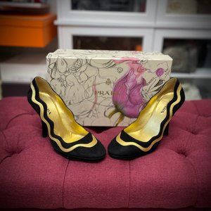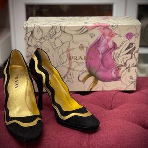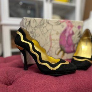 Condition: Very good, minimal scuffing to suede, small scuff/tub to back of left heel on gold area