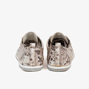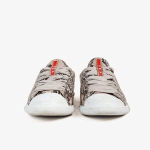 Prada Red Label Taupe Snake Print Satin Ribbon Tied Sneakers, Size 7.5