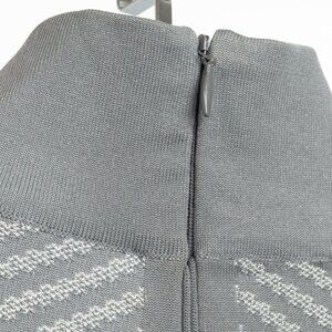 Made in Italy, this top from Prada's 2018 Resort runway collection is crafted in a grey embossed techno knit, and features long sleeves, a mock neck, a fitted bodice, and an invisible back zip closure.