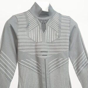 Prada Resort 2018 Runway Grey Embossed Techno Mock-Neck Long-Sleeve