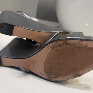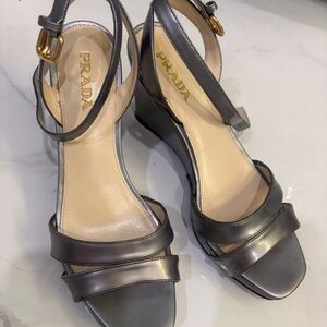 Beautiful silver grey leather Prada wedge heels, in excellent condition with minor wear only on the leather bottomed heels.