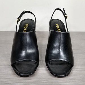 Prada Slingback 85mm Sandals, Black Leather, Size 6.5 US / 36.5