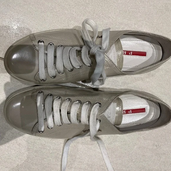 Light grey patent leather Prada sneakers. Like new/lightly worn. Size 37 womens.