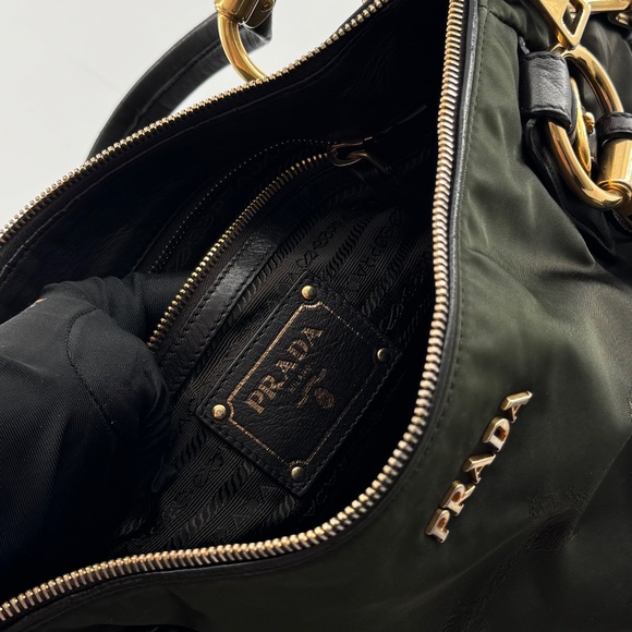 Prada Tessuto Nylon Shoulder Bag with Leather Trim – Black