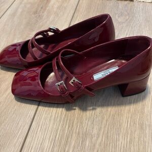 Prada Vernice Porpora Square Toe Mary Jane Pump with straps.