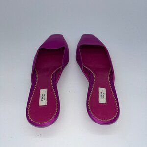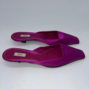 Prada Vero Cuoio Satin Square Toe Mules - Vintage
