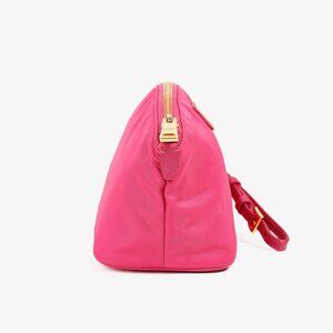 This vintage Prada pouch (Art. 1N1856) adds a pop of fuchsia pink to your outfit. The detachable strap allows for versatility in carrying, while the interior zip pocket keeps your essentials organized. Made with durable nylon and accented with gold-tone hardware, this pouch is both stylish and functional.