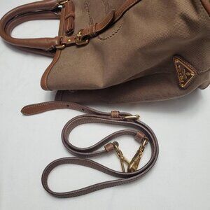 Prada Vintage Leather Canvas Shoulder Top Handle Bag