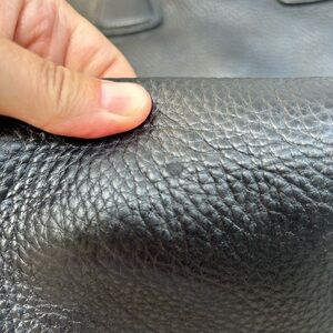High quality Black Pebble grained leather with Gold zip sides. Interior is lined with Prada signature fabric. Gold tone metal hardware adorns this tote.