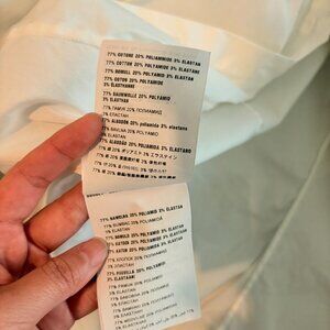 Made in Romania with a luxe blend of 77% cotton, 20% polyamide, and 3% elastane, it offers a crisp tailored look with just the right amount of stretch for all-day comfort.
