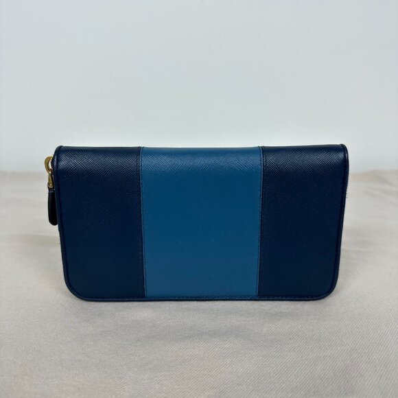 Prada blue and light blue bicolor saffiano wallet