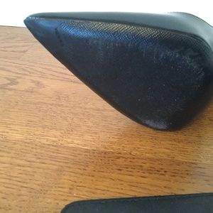 Black Prada designer Saffiano leather pumps color black. In pristine condition worn a few times comes with box shoe bag and original bill. Bought at HOLT RRFREW Paid 850.00 Canadian .Slight scuffing on sole hardly noticeable as sole is black .In stores with 3.3 inch heel this is 4.3 and sold out everywhere.