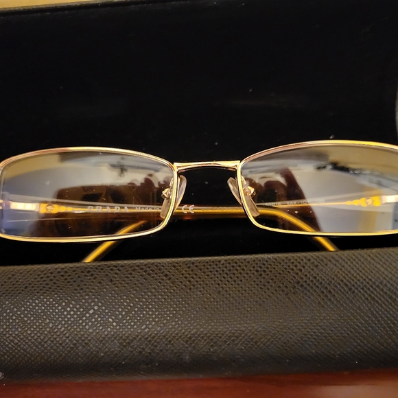 Genuine Prada tortoise and gold accented frames (lenses still in). You can put in your own prescription...