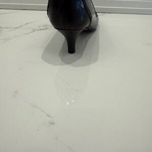 Prada kitten heels in Grey embossed Croc / Black brogue detail. Excellent condition, size 35.5. Heel is approx. 2.25".