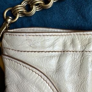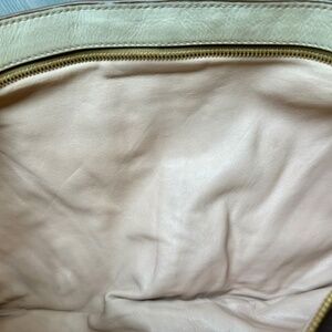 Prada leather handbag/clutch with removable chain handle, off white/cream, clean leather inside, post dry cleaners, very good condition, minor signs of wear (shown on pictures) 15x8.5 inches, comes with original dustbag