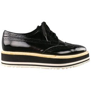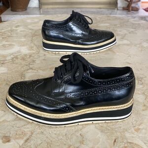 Prada Black Brogue Leather Wingtip Platform Oxford Shoes
