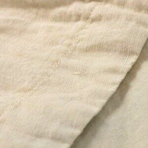 No content tag but feels like a cotton/hemp blend (to my knowledge their whole line features organic cotton). Quilted-detail may be a different material like hemp or silk. Beautiful contrast.