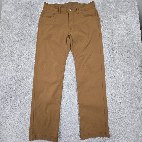 Prana Brion Pants Men 34 (Fits 34x31) Brown Slim Straight Outdoors Hiking