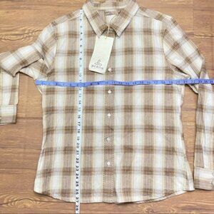 Prana Button Down Shirt Riley Woven Checked Print Women Size XL NWT
