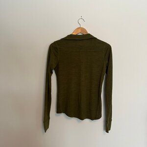 Prana. Button Up Long Sleeve Top. Heathered Green Color. Size Medium. Womens.