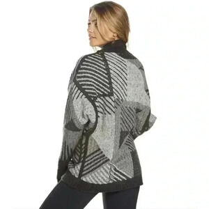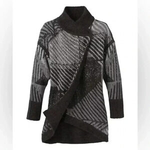 Prana Celandine Cardigan Wrap Sweater Wool Knit Grey Black Print Size Medium