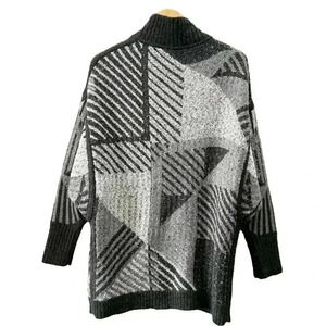 Prana Celandine Cardigan Wrap Sweater Wool Knit Grey Black Print Size Medium