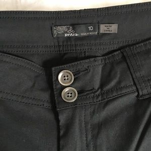 Prana Halle straight pant, 5 pockets, leg pants can be rolled up on both sides, EUC, fabric has spandex for stretch. Colour is black.