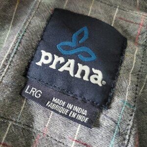 Prana Mens Grey Cotton Grid button Down Casual Shirt L