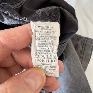 53% Hemp / 44% recycled polyester, 3% spandex
