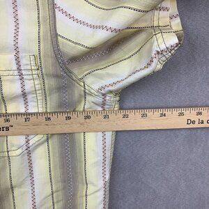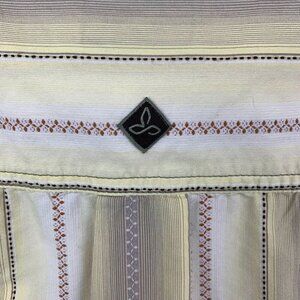 Prana Mens Shirt Large Yellow Vertical Striped Pearl Snap Button Up Southwestern