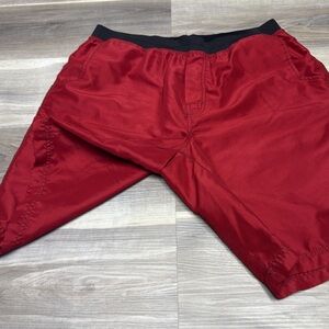 Stylish red swim shorts by Prana. Features elastic waistband for comfort. Look great on Comfortable In great condition Some light wash wear