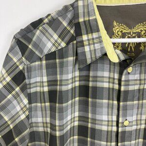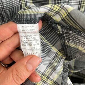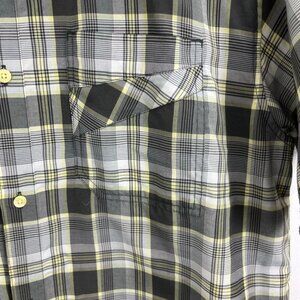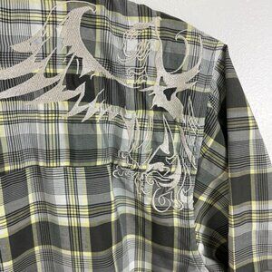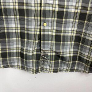 Prana Yellow & Brown Plaid Short Sleeve Shirt with Embroidery Design