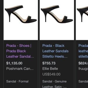 Prada Black Leather Sandals Stiletto Heels Open Toe Shoes