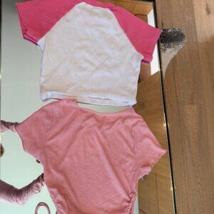 Pre-Loved Bundle of Brandy Melville Pink Baseball & Ribbed Rushed T - XS