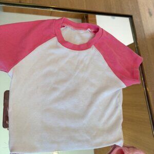 This is a bundle of pre-loved Brandy Melville pink baseball cropped T and dusty pink rushed T - both in XS/S. The tags are missing, but I know I bought the baseball T at Brandy Melville because my daughter had them in pink and blue. Note that these are in fair condition, with some marks on the back (I think from washing). Can't beat the price, though!