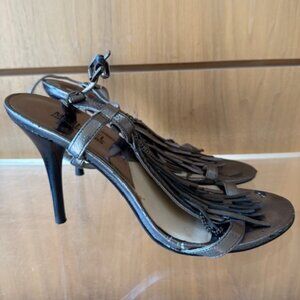 Pre-Loved Pewter Metallic Michael Kors Fringe Strappy Sandals - Size 7