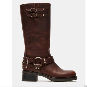 Pre-Loved STEVE MADDEN Astor Brown Leather Biker Boots - Size 6.5 US