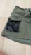 This stylish pre-owned Ramy Brook mini skirt features a chic olive green color with standout black sequin front pockets and flap detailing. It has an elastic waistband at the back for a comfortable fit and a tie belt accent in the front. The skirt is versatile, perfect for casual or dressed-up looks.
