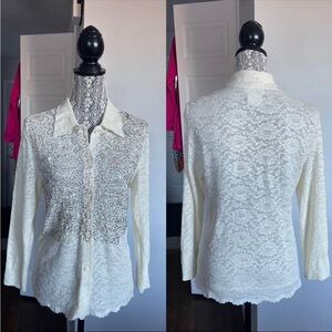 Precedent Los Angeles Black Textured Cardigan Sweater Gold Button Size S/ Chic