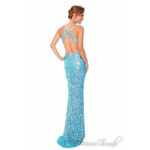 Precious Formals Sequin Low Back Prom Dress P9105 Crystal Turquoise