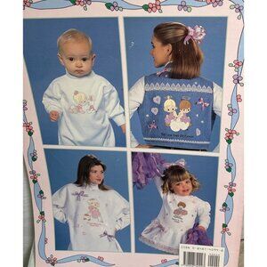 This craft book includes a collection of Precious Moments designs for creating adorable iron-on transfers. Suitable for various DIY apparel projects.