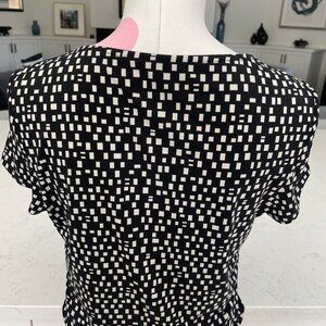 Precis Easycare Cowl Neck SS Geometric Print Polyester Top Black + White Sz S