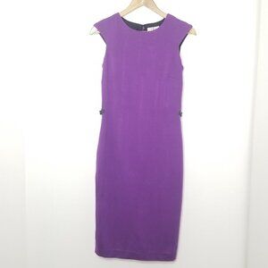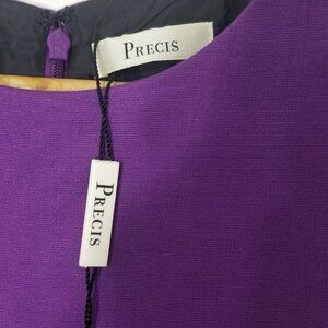 NWOT Precis Petite Lined Purple Coquette Midi Length Sheath Dress Cap Sleeve Zippered Back Scoop Neck Timeless Stretch Blend Fabric Lined