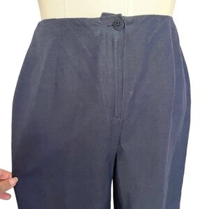 Precis Petite Navy Blue Linen Blend High Rise Wide Leg Cropped Pants - 6 🇬🇧